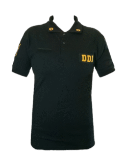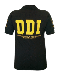 No incluye emblemas ni jerarquías ilustrativas DE DDI INVESTIGACIONES NEGRA DE PIQUE, MANGA CORTA, CON ESTAMPADO EN BRAZOS, ESPALDA Y PARTE DELANTERA.